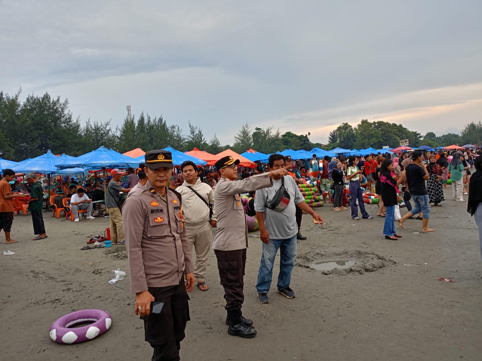 Para personil memberikan himbauan kamtibmas kepada masyarakat pengunjung berupa instruksi untuk tidak berenang melewati batas keselamatan,serta pentingnya pengawasan terhadap anak-anak saat bermain dan berenang.