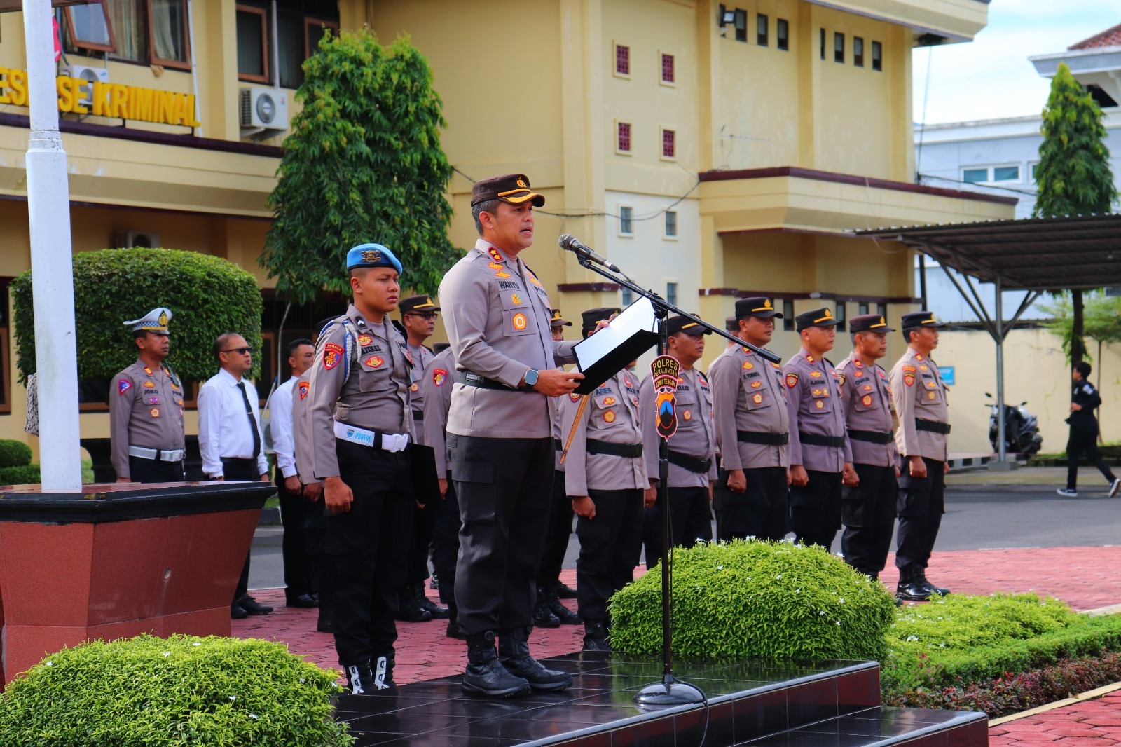 AKBP Wahyu Rohadi dalam kesempatan itu menyampaikan amanat dari Kapolda Jateng. Dirinya menyampaikan bahwa situasi kamtibmas di wilayah hukum Polda Jawa tengah, tanggal 01 s/d 14 maret 2024 telah terjadi tindak pidana sebesar 564 kasus. “Kasus tertinggi adalah tindak pidana Narkoba sebanyak 126 kasus, perjudian sebanyak 88 kasus dan tindak pidana pencurian dengan pemberatan (curat) sebanyak 52 kasus, dengan penyelesaian sebanyak 26 kasus,” ujarnya.