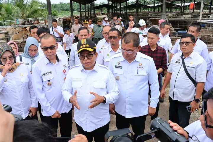 Di lokasi tersebut, Pj. Gubernur beserta rombongan meninjau peternakan sapi yang memiliki populasi sekitar 2.500 ekor. Kunjungan ini bertujuan menilai perkembangan sektor peternakan dan perkebunan, yang merupakan bagian penting dari perekonomian daerah.