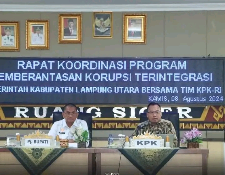 Lampung utara,Kompas86.Com Penjabat (Pj) Bupati Lampung Utara, Drs. H. Aswarodi, M.Si, didampingi oleh Sekretaris Daerah Kabupaten Lampung Utara, Drs. Lekok, MM, menghadiri Rapat Koordinasi Program Pemberantasan Korupsi Terintegrasi. Acara ini diselenggarakan di Ruang Siger, Sekretariat Daerah Kabupaten (Setdakab) Lampung Utara dihadiri Oleh Staf Ahli, Asisten, Seluruh Kepala OPD pemerintah Kabupaten Lampung Utara.(8/08/2024)