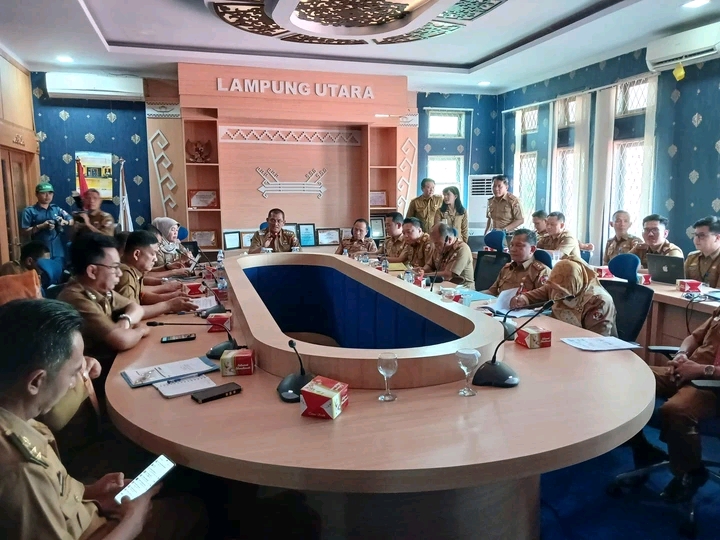 Lampung Utara,Kompas86.Com Pj.Bupati Lampung Utara,Drs.H.Aswarodi,M.Si., memimpin rapat persiapan evaluasi Laporan Kinerja Triwulan II tahun 2024 di Ruang Rapat Bupati Lampung Utara pada Senin, 26 Agustus 2024. Rapat ini dihadiri oleh Asisten 1, Asisten 3, serta Para Kepala Dinas, Kepala Bagian, dan pimpinan OPD terkait yang berperan penting dalam pelaksanaan program-program pembangunan di Lampung Utara.(26/8/2024)