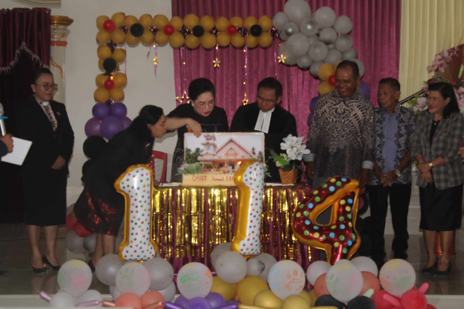dr. Rinny Tamuntuan pj Bupati Sangihe menghadiri ibadah syukur perayaan HUT GMIST jemaat Efata Kolongan Mitung yang dirangkaikan dengan peresmian pastori ll.