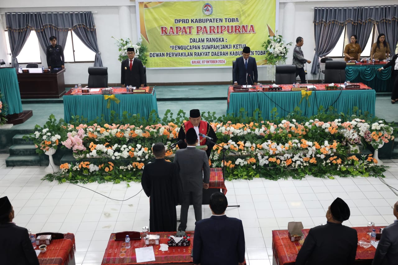 Pengucapan sumpah/janji dipandu langsung oleh Ketua Pengadilan Negeri Balige, Dr. Makmur Pakpahan, dan dihadiri oleh sejumlah pejabat penting, anggota DPRD, unsur Forum Koordinasi Pimpinan Daerah (Forkopimda), Sekretaris Daerah Kabupaten Toba, serta tokoh masyarakat dan agama.