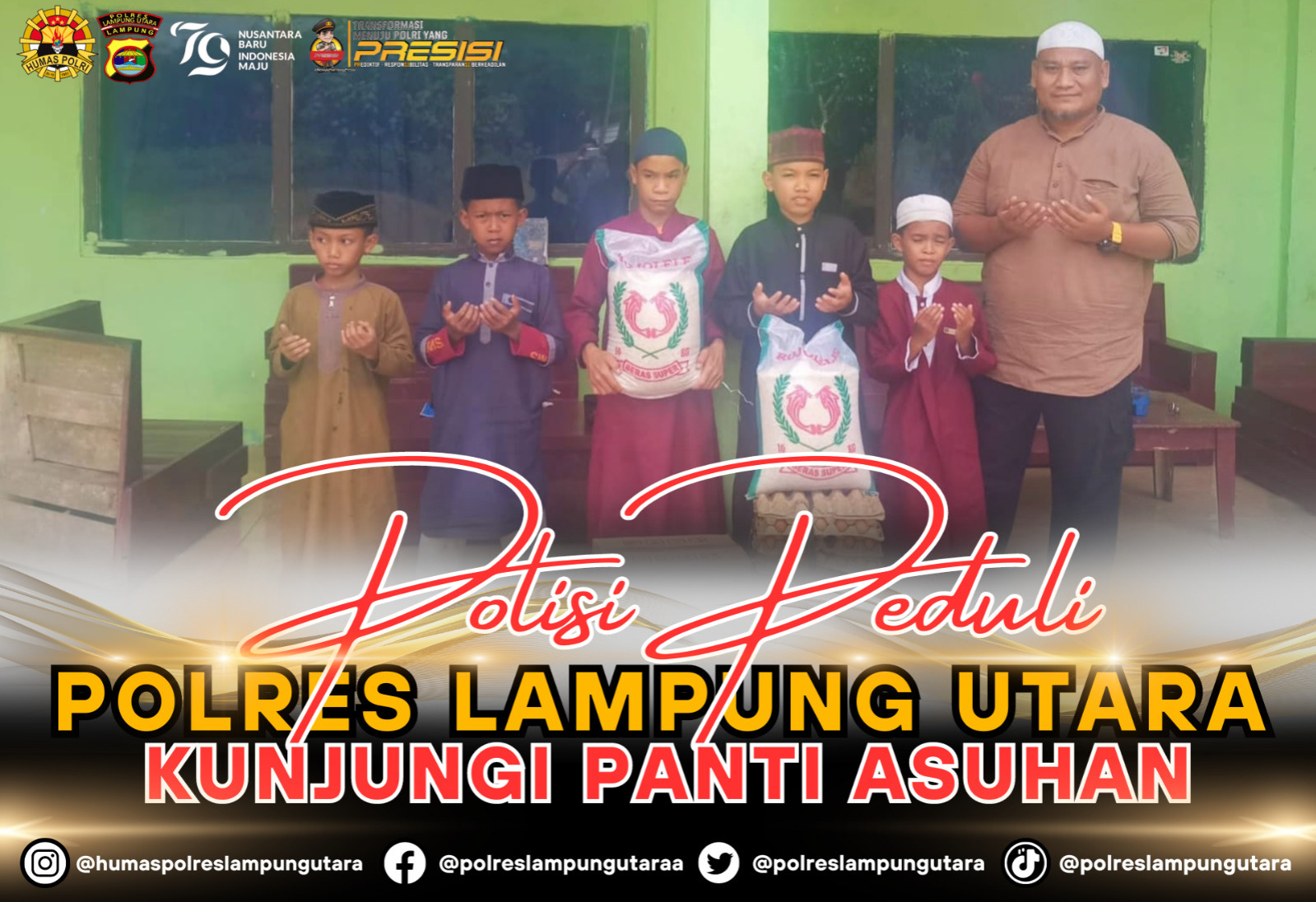 Kunjungan silaturahmi jajaran Polres Lampung Utara berlangsung di panti asuhan anak yatim piatu AL Mursin, Mulang Baya, Kotabumi Selatan pada, Kamis 22 Agustus 2024.