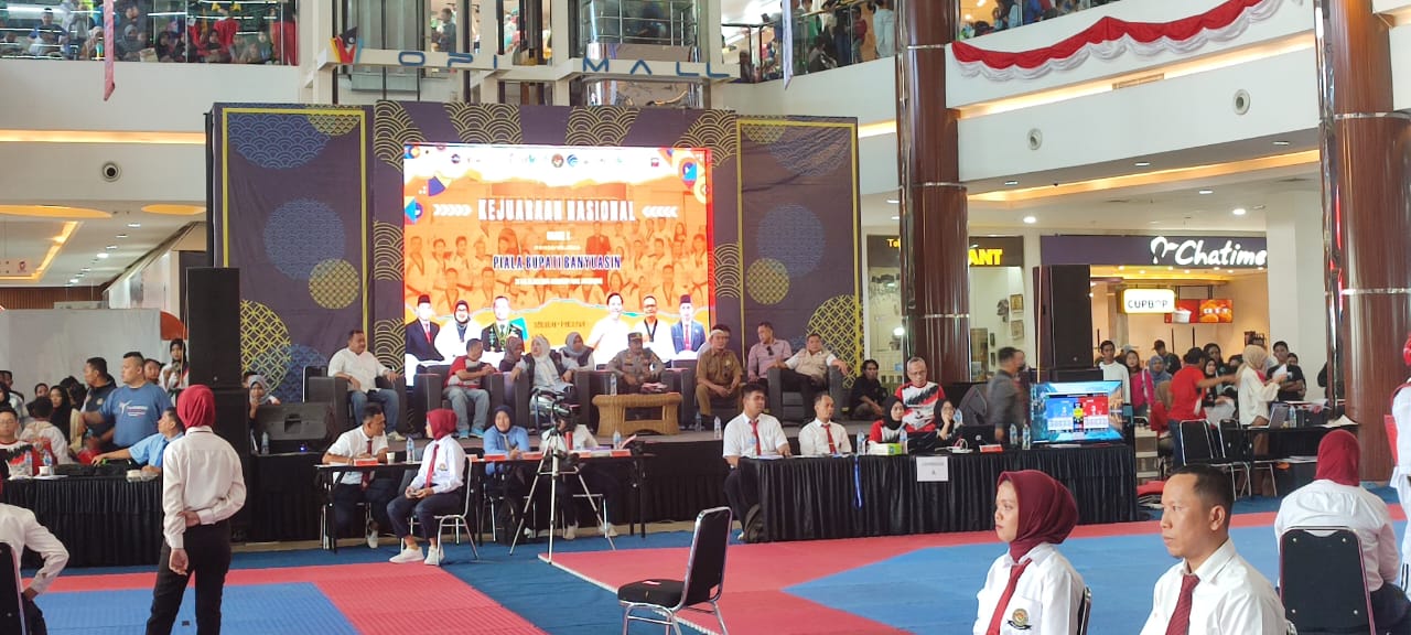 BANYUASIN – Kapolres Banyuasin AKBP Ruri Prastowo SH SIK MIK yang diwakili Kapolsek Rambutan AKBP Mudjiono* , menghadiri undangan Kejuaraan Taekwondo Piala Bupati Banyuasin tahun 2024 di Atrium Lobby Utama Opi Mall Kelurahan Jakabaring Selatan Kecamatan Rambutan,Senin, (29/7).