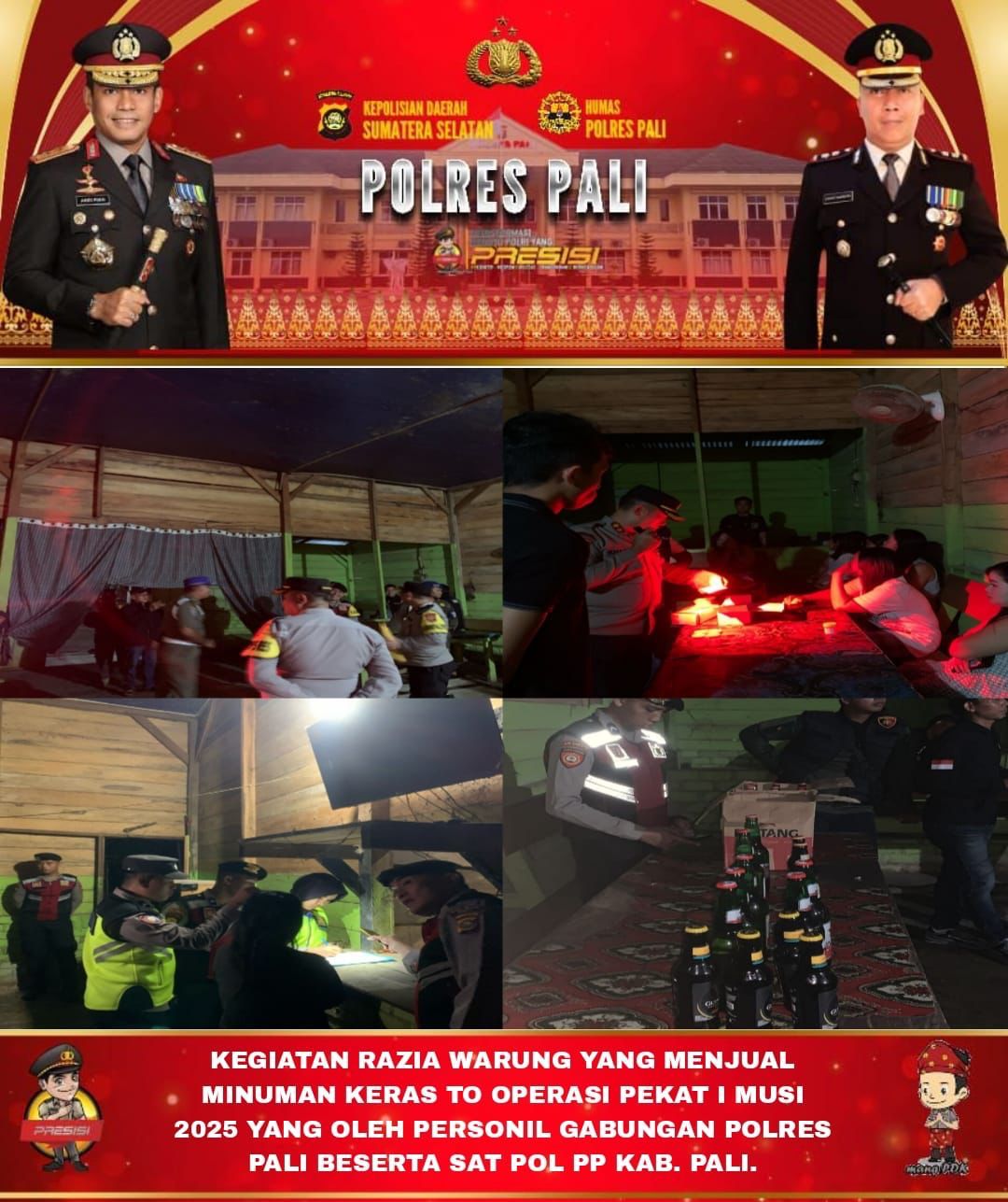 PALI – Kepolisian Resor (Polres) Penukal Abab Lematang Ilir (PALI) bersama Satuan Polisi Pamong Praja (Satpol PP) Kabupaten PALI menggelar razia terhadap warung-warung yang diduga menjual minuman beralkohol tanpa izin.