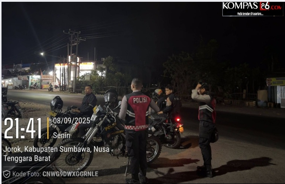 KOMPAS86.COM — Satuan Samapta (Sat Samapta) Polres Sumbawa, Polda NTB, kembali menunjukkan komitmennya dalam menjaga keamanan dan ketertiban masyarakat (kamtibmas). Pada Senin malam, 8 September 2025, pukul 20.30 WITA hingga selesai, anggota Sat Samapta menggelar patroli gabungan di sejumlah titik rawan di wilayah hukum Polres Sumbawa.
