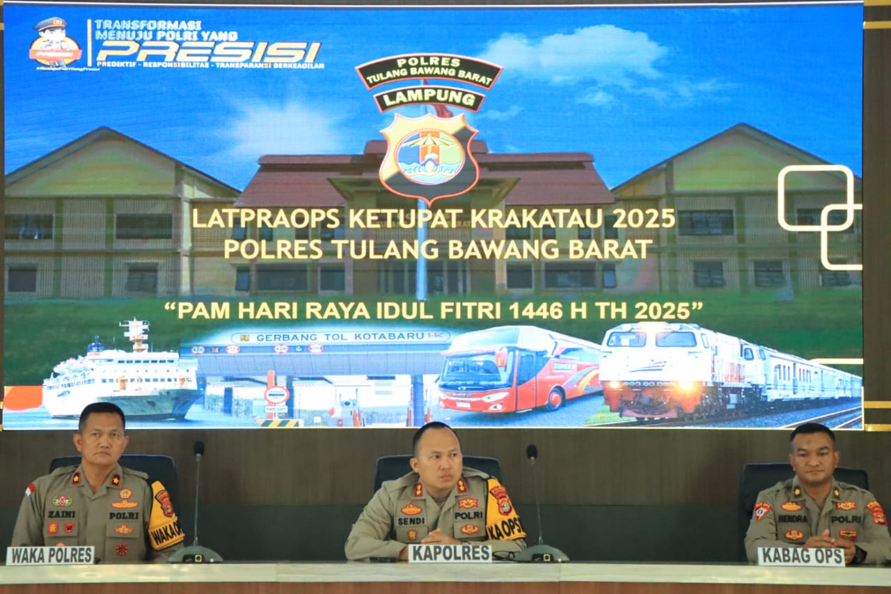 Latpraops dipimpin oleh Kapolres Tubaba AKBP Sendi Antoni.S.I.K, M.I.K, di dampingi Wakapolres Kompol Zaini Dahlan, S.H., M.H beserta Kabag Ops Kompol Hendra Gunawan, S.H., M.H pejabat utama, para Kapolsek serta personel yang terlibat dalamOperasi Ketupat Krakatau 2025.