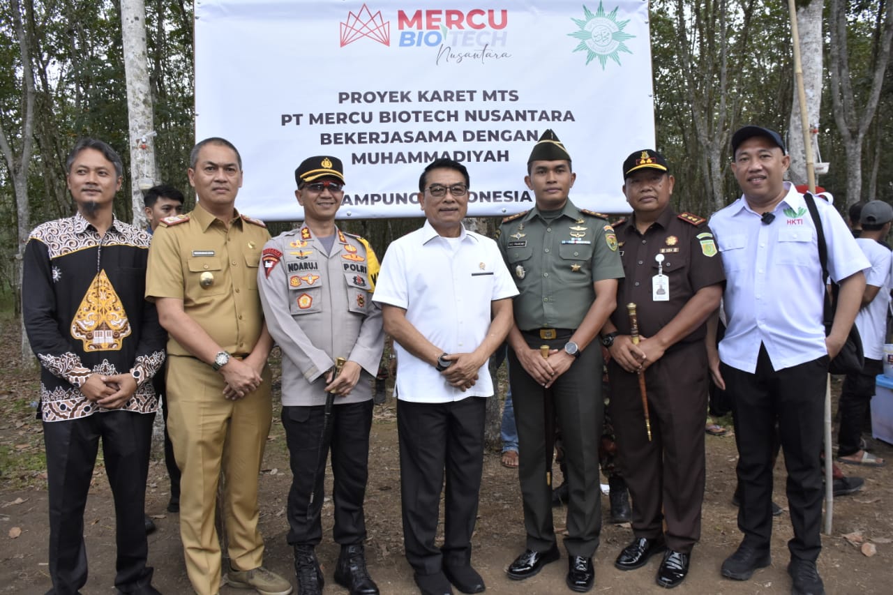 Tulang Bawang Barat,Kompas86.Com Kunjungan Kepala Staff Kepresidenan Republik Indonesia, Bapak Jenderal TNI (Purn.) Dr. H. Moeldoko dalam rangka meninjau uji coba teknologi sadap karet dari Mercu Group Malaysia bekerjasama dengan Muhammadiyah Prov. Lampung bertempat di Kebon Karet Opal Nenemo Komplek Uluan Nughik Tiyuh (Desa) Panaragan Kec.Tulang Bawang Tengah Kab. Tulang Bawang Barat, Senin (13/05/2024) siang.