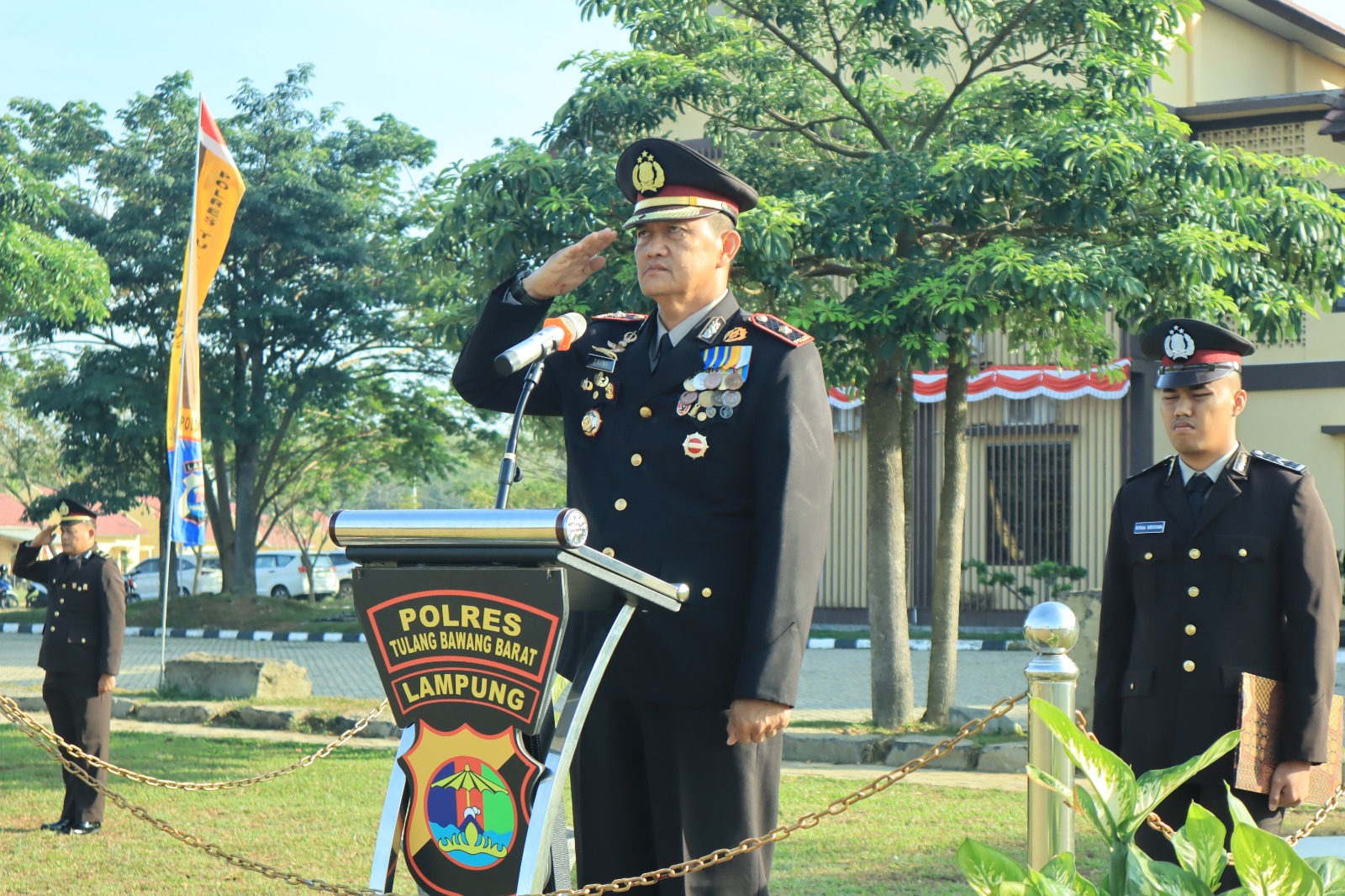 Bertindak sebagai Inspektur Upacara Kapolres Tulang Bawang Barat AKBP Sendi Antoni, S.I.K., M.I.K. yang diwakili Wakapolres Tubaba Kompol Zaini Dahlan, S.H., M.H. dan dihadiri juga oleh para pejabat utama, Perwira, personel Polres Tubaba.