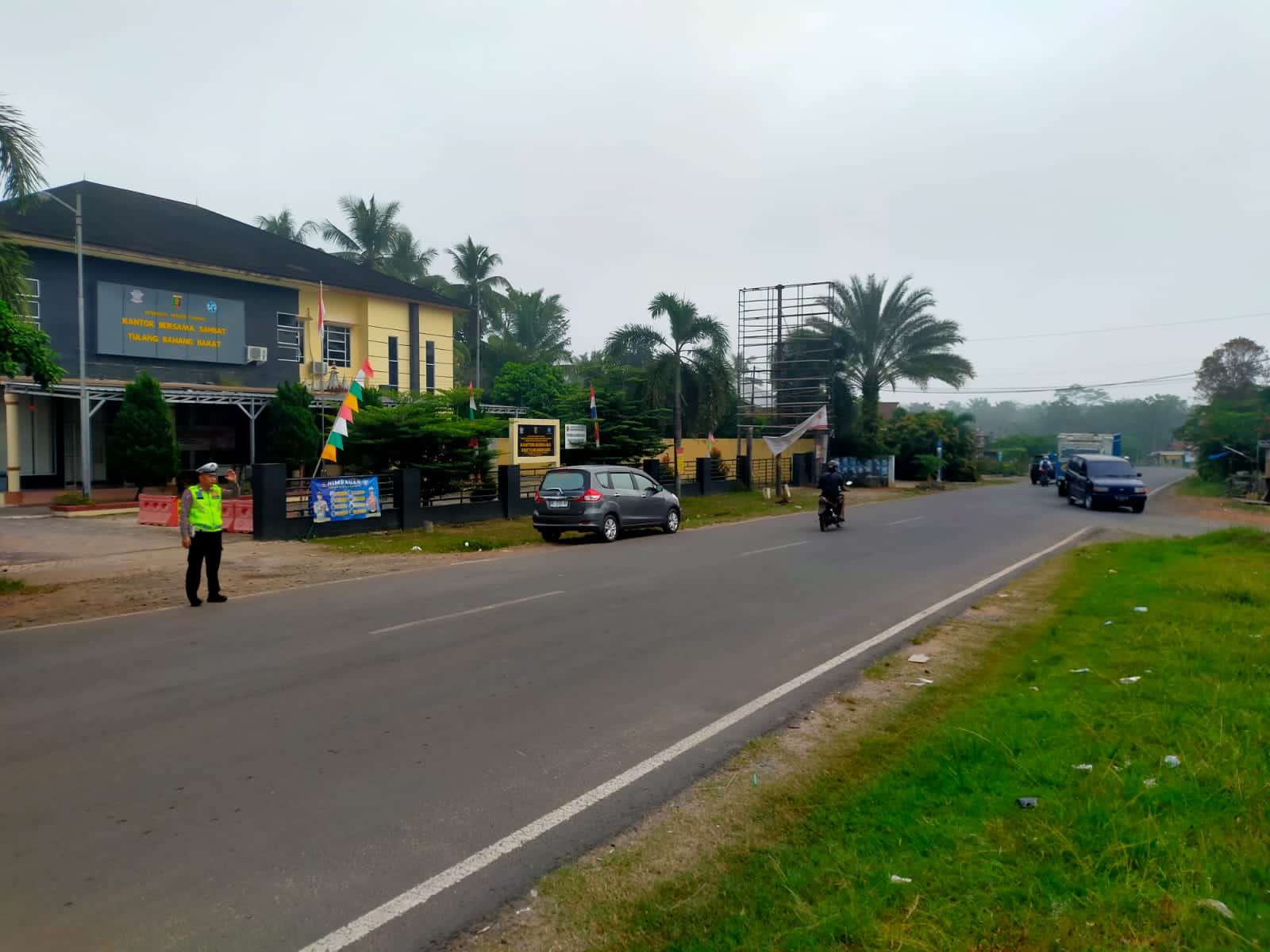 Tulang Bawang Barat,Kompas86.Com Satuan Lalu Lintas Polres Tulang Bawang Barat Melaksanakan Kegiatan Pengamanan arus lalu lintas pagi di Depan Kantor Samsat Jalan Poros Tiyuh Candra Mukti Kec. Tulang bawang tengah kab. Tulang Bawang Barat, Jumat (05-07-24).