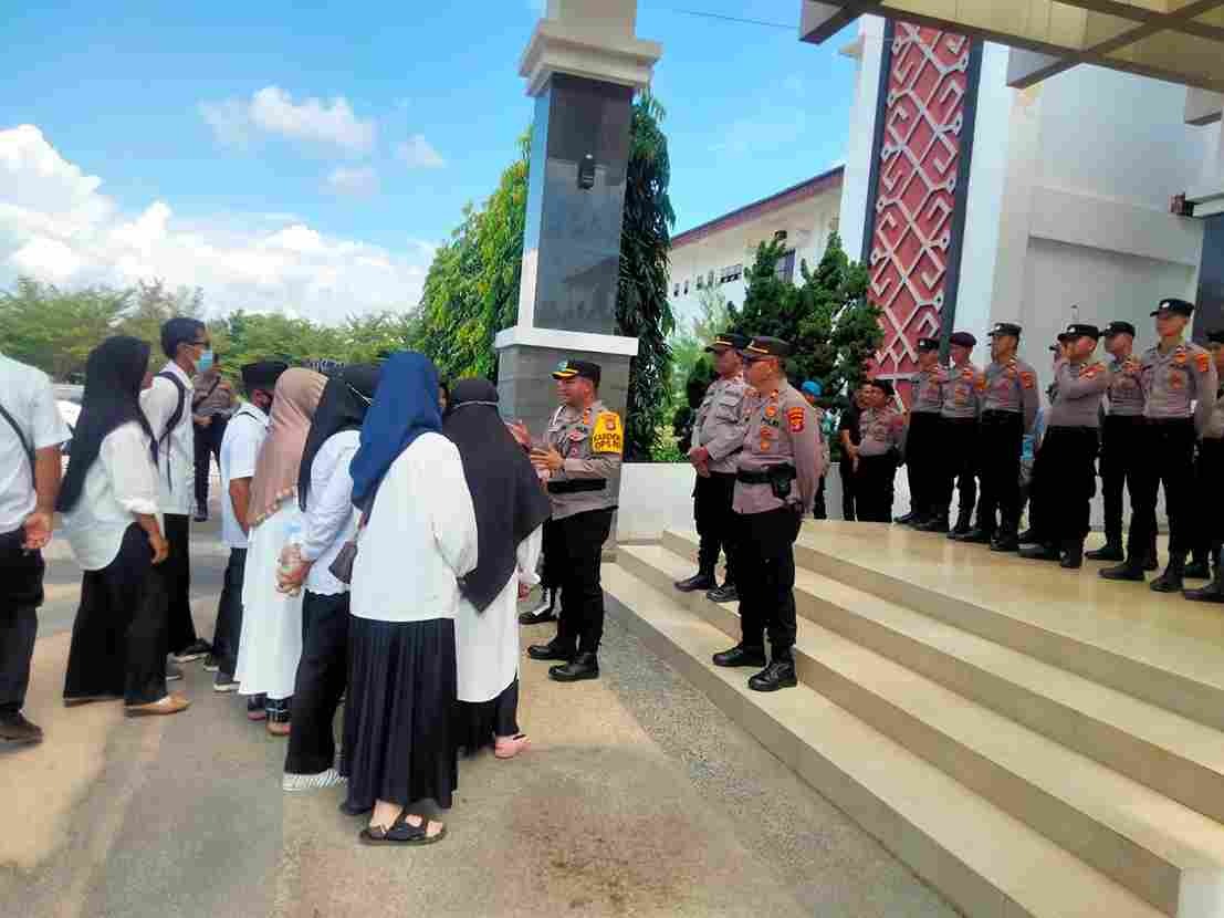 “Kami laksanakan pengamanan unjuk rasa dengan maksud agar situasi masyarakat pada saat melakukan kegiatanya dapat berjalan aman dan kondusif, serta menjadi mediator antara pengunjuk rasa dan pihak pemerintah daerah,” Ujar KOMPOL Hendra.