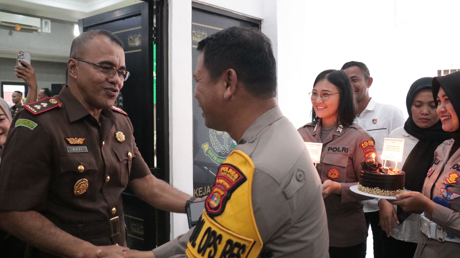 Rombongan dari Polres Tulang Bawang ini tiba dengan membawa 2 (dua) buah kue tar ulang tahun, dan disambut langsung oleh Kepala Kejaksaan Negeri Tulang Bawang, Devi Freddy Muskitta, SH, MH, yang didampingi Pejabat Kejaksaan Negeri Tulang Bawang.