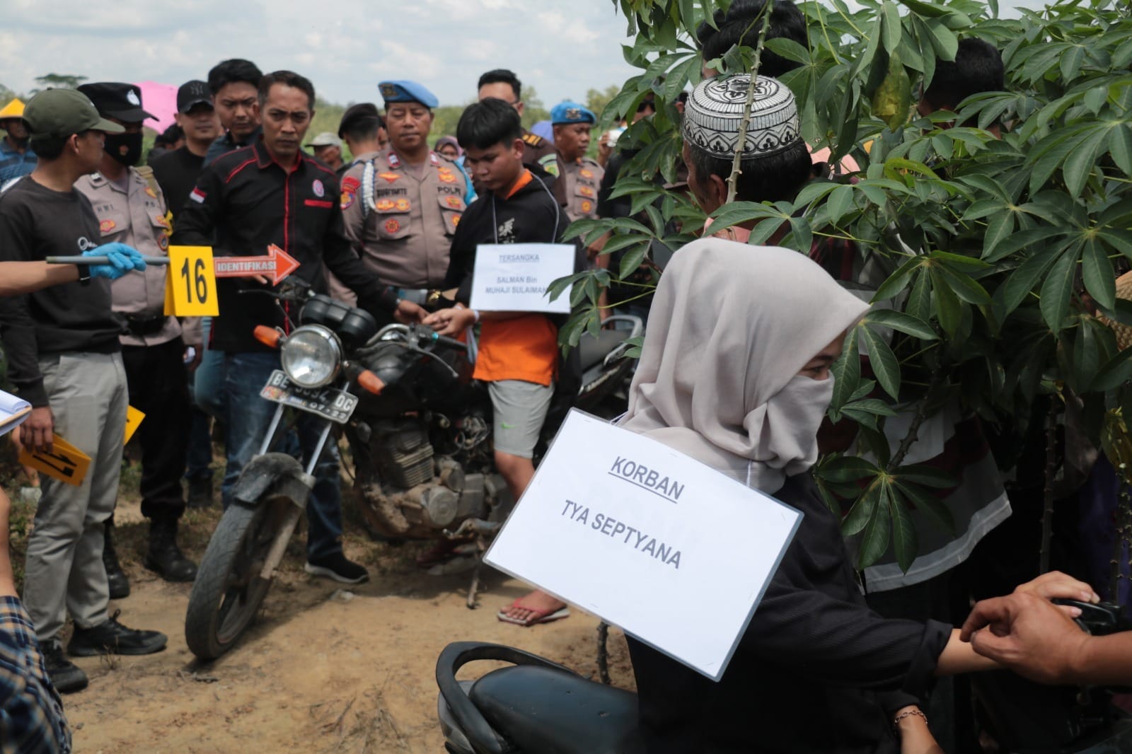 “Kemarin siang, kami menggelar rekonstruksi pembunuhan berencana terhadap korban Tya Septiana (26), honorer staff TU salah satu SMA oleh calon suaminya sendiri, Salman (18), yang berlangsung di 6 (enam) lokasi yang berada di Kampung Moris Jaya dan Kampung Tri Darma Wira Jaya,” ucap Kasat Reskrim, AKP Noviarif Kurniawan, S.Tr.K, SIK, MH, mewakili Kapolres Tulang Bawang, AKBP Yuliansyah, SIK, MH, Jum’at (18/07/2025).
