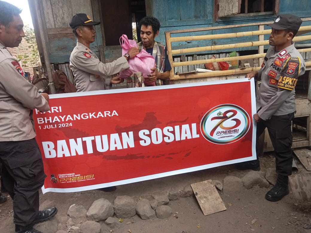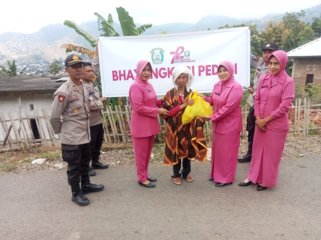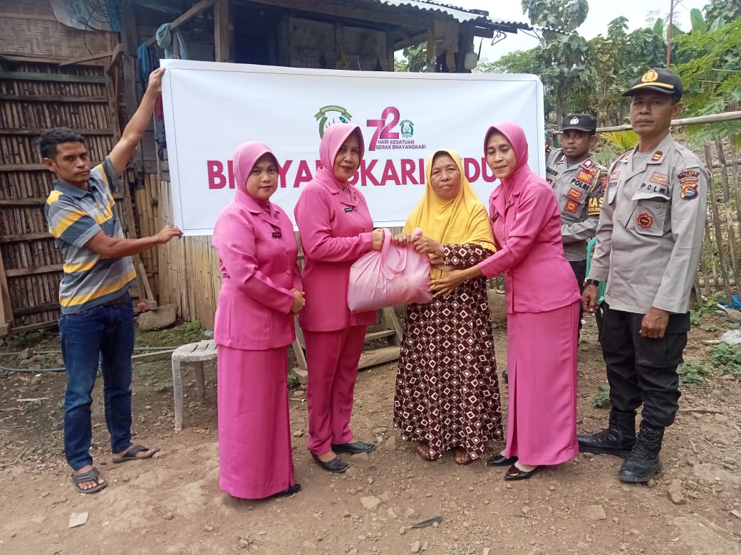 Polsek Donggo dan Bhayangkari, Salurkan Bansos Menjelang HUT Bhayangkara Ke-78