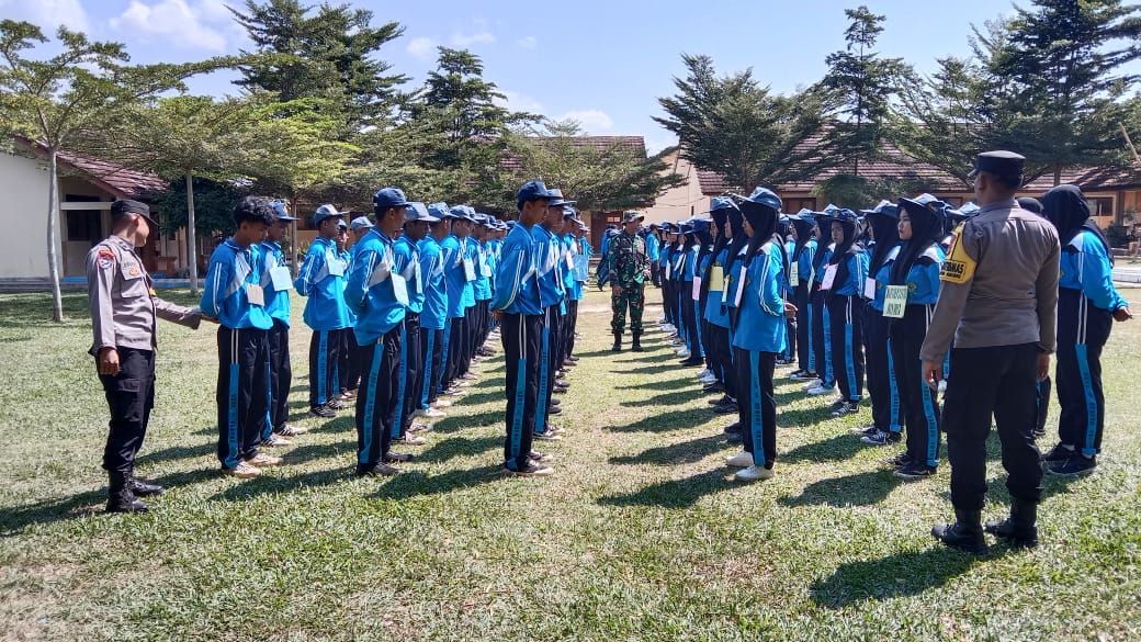 bentuk dukungan Polri terhadap Dunia Pendidikan pengisian Materi tentang Ketangkasan Baris Berbaris dalam Masa Pengenalan Lingkungan Sekolah (MPLS) kepada Siswa dan Siswi di SMKN 1 Gunung Agung Kec. Gunung Agung Kab.Tulang Bawang Barat,