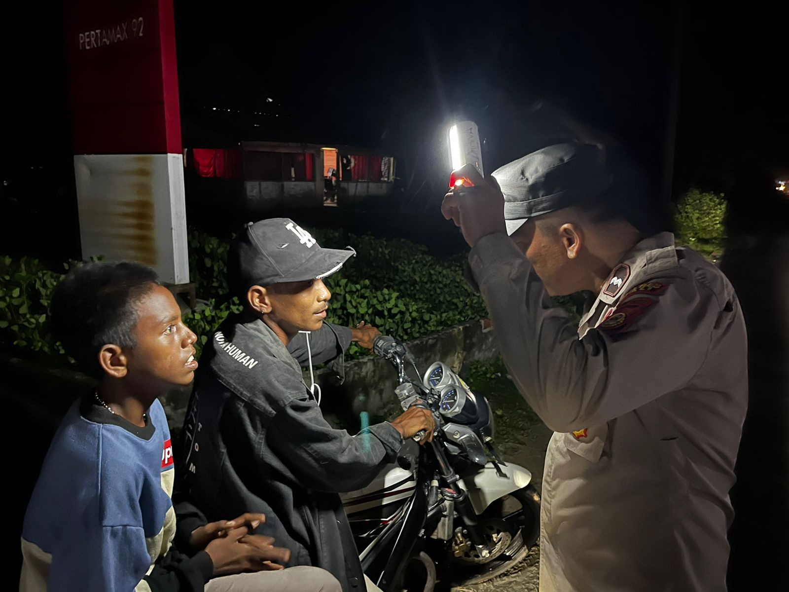 Dalam operasi tersebut, petugas melakukan pemeriksaan terhadap kendaraan roda dua (R2) dan roda empat (R4) yang melintas di jalan depan Mako, serta menyampaikan imbauan kamtibmas kepada para remaja yang kedapatan nongkrong hingga larut malam.