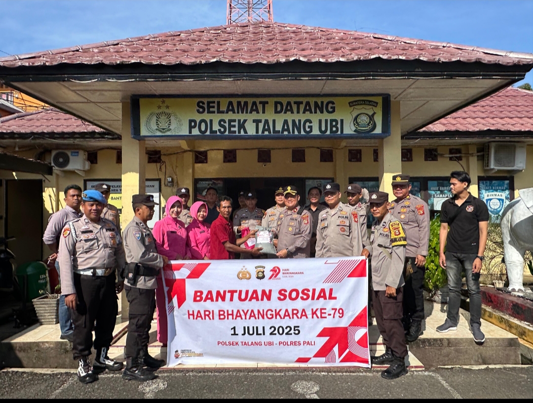 PALI – Dalam rangka memperingati Hari Bhayangkara ke-79 tahun 2025, Polsek Talang Ubi melaksanakan kegiatan bakti sosial dengan menyalurkan bantuan berupa 50 paket sembako kepada masyarakat yang membutuhkan. Kegiatan yang berlangsung pada Selasa (17/6/2025) pukul 09.00 WIB ini digelar langsung diwilayah hukum Polsek Talang Ubi, Kabupaten Penukal Abab Lematang Ilir (PALI), Sumatera Selatan.