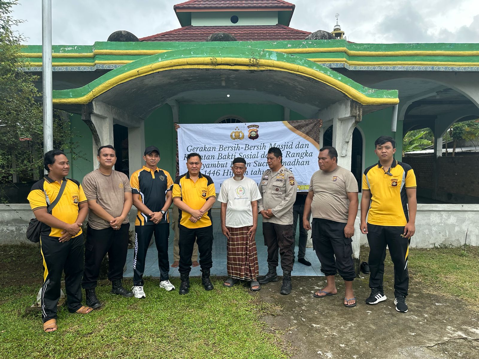 Dipimpin langsung oleh Kapolsek Tanah Abang IPTU Arzuan S.H.,seluruh personel Polsek bahu-membahu membersihkan area masjid guna menciptakan lingkungan ibadah yang lebih nyaman dan khusyuk bagi umat Muslim dalam menjalankan ibadah di bulan suci.