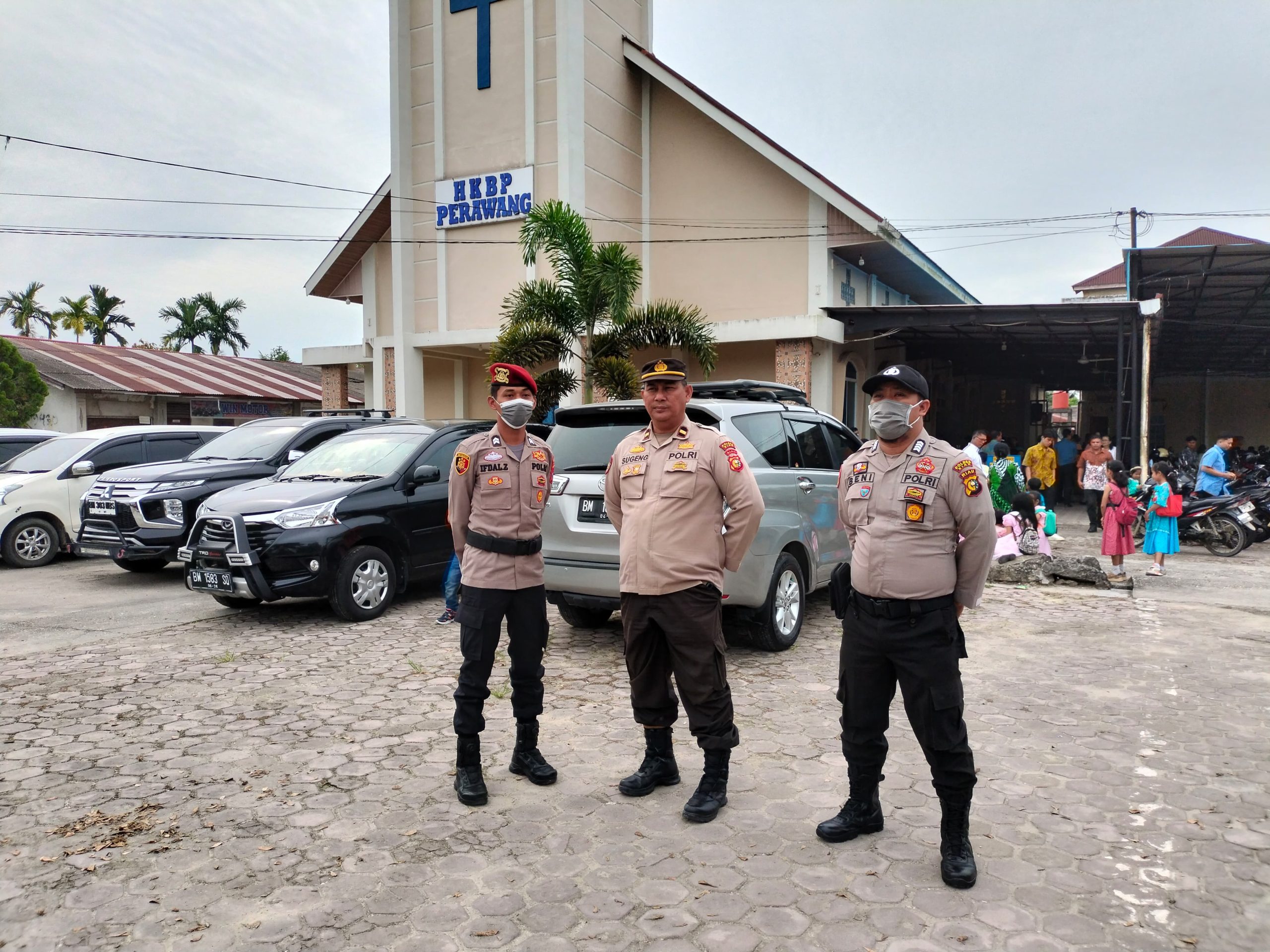 Dalam giat tersebut Panit Binmas Ipda Sugeng Mishari S.H bersama Kasi Humas Aiptu Jonas melakukan patroli dibeberapa gereja yang dilakukan pengamanan personil dan himbauan kepada Jemaat gereja antisipasi gangguan Kamtibmas.