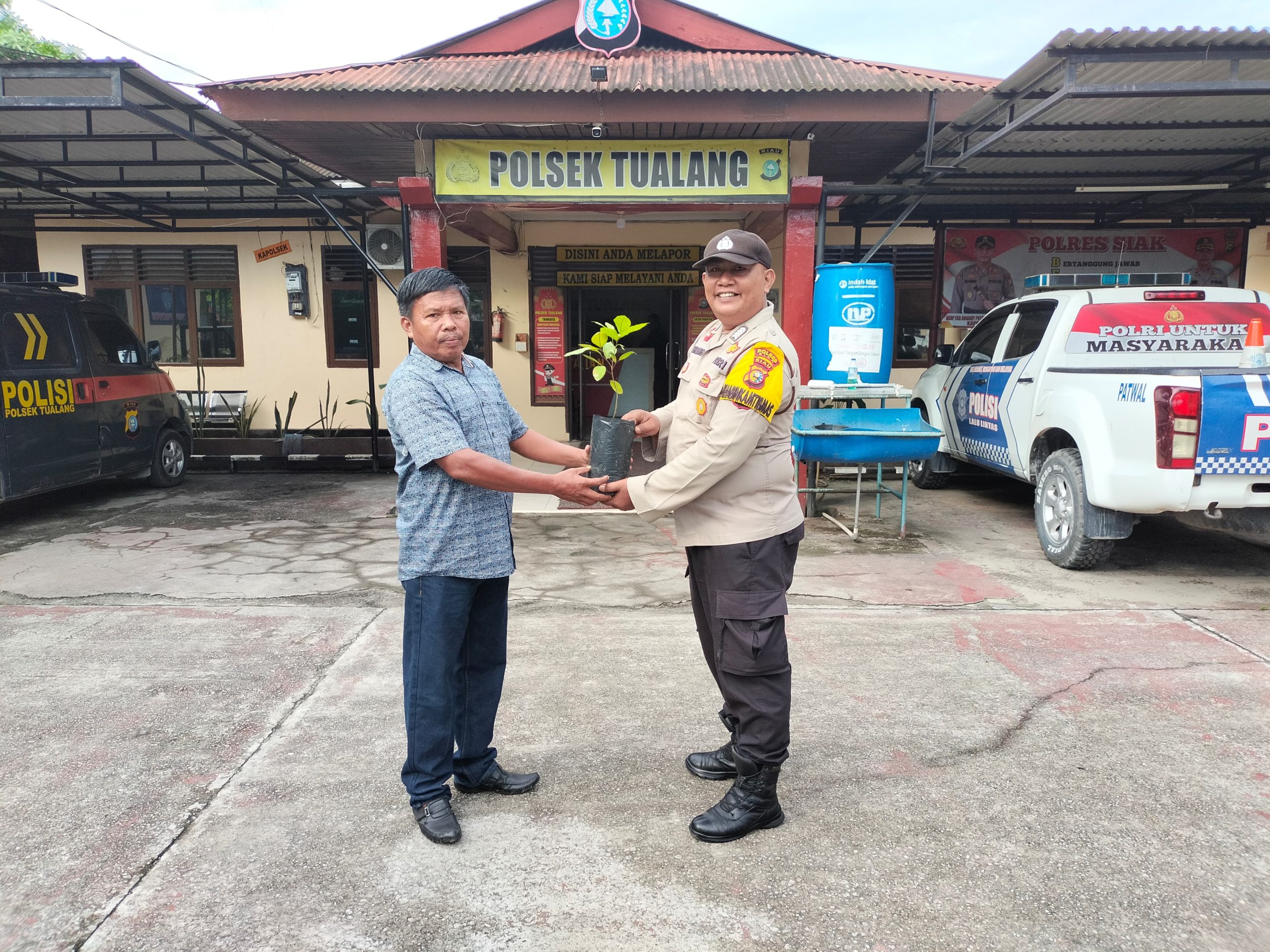 Dalam rangka memperingati hari ulang tahun salah satu personel, Polsek Tualang melaksanakan kegiatan simbolis berupa pemberian dan penanaman bibit pohon sebagai wujud apresiasi serta kepedulian terhadap lingkungan.