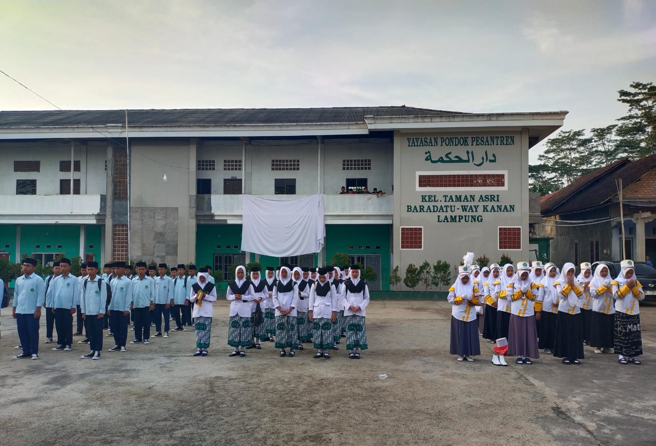 Peserta Didik Pondok pesantren Darul Hikmah Baradatu ikut memeriahkan HUT TNI yang ke 79 dengan mengikuti kegiatan PBB Di KODIM 0427 Way Kanan.