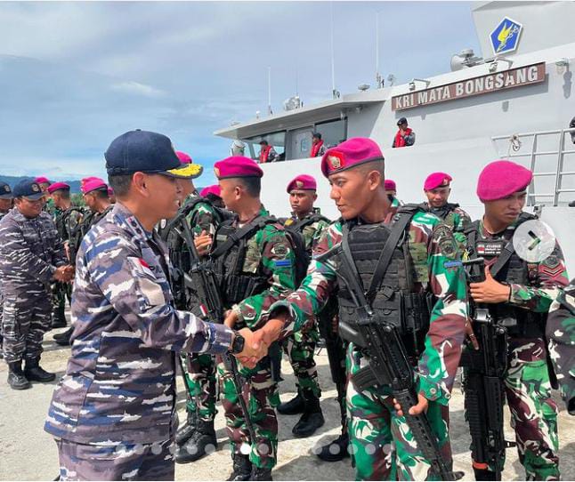 KOMPAS86.COM, Nabire-Papua, Distrik Kimi Kab. Nabire Komandan Lanal Nabire Letkol Laut (P) Pius Herdasa Krisna Murti, S.T, M.T, CBEI, CACA, CRMP, CHRMP. Beserta dengan seluruh Perwira dan Anggota menyambut KRI Matabongsang – 873, Kamis (29/08/2024).