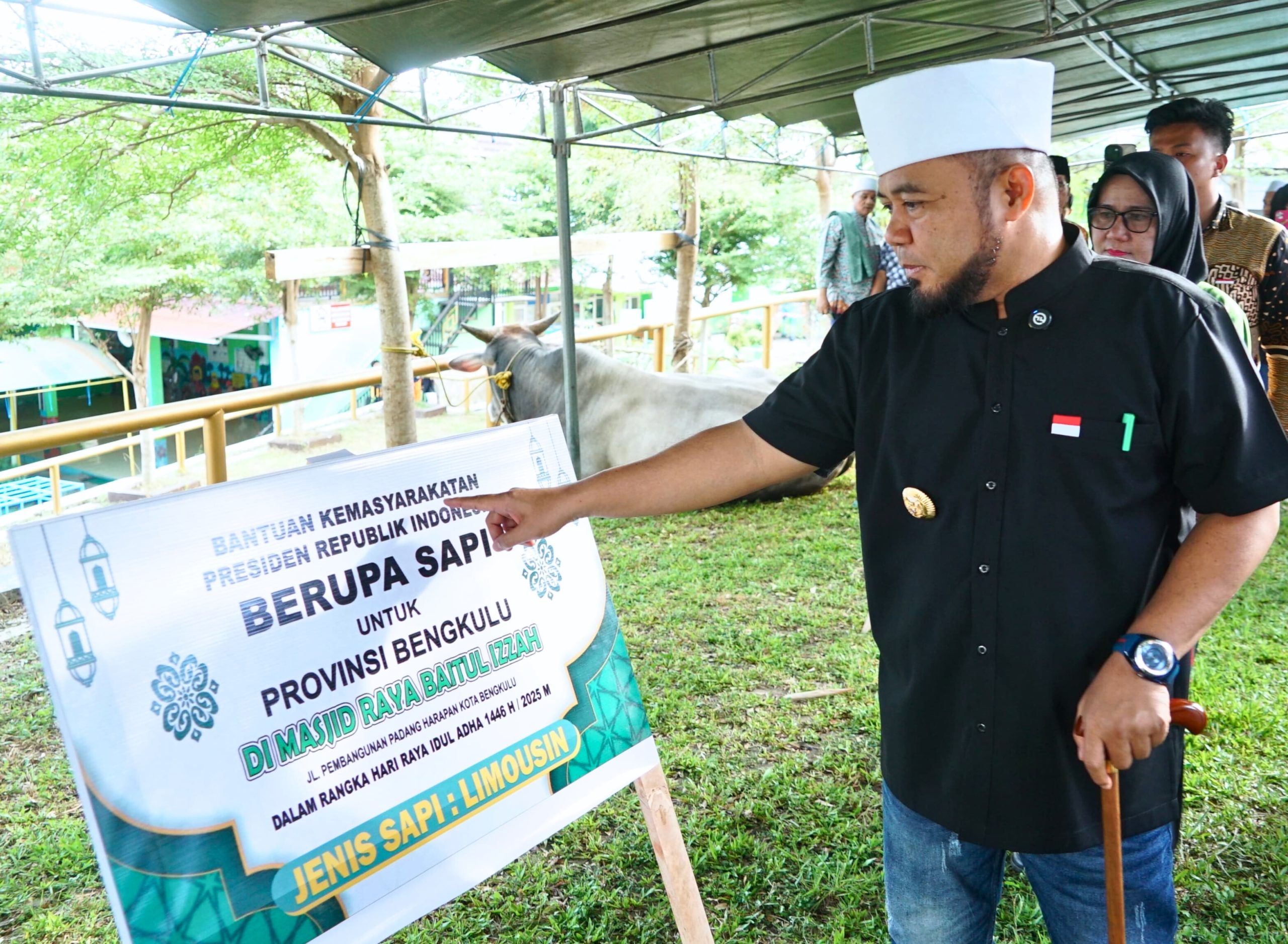 Penyerahan sapi dari Presiden Prabowo dilakukan pada Kamis (5/6/2025). Salah satu lokasi penyerahan bertempat di Masjid Raya Baitul Izzah, Kota Bengkulu, dan diterima langsung oleh Gubernur Bengkulu, Helmi Hasan.