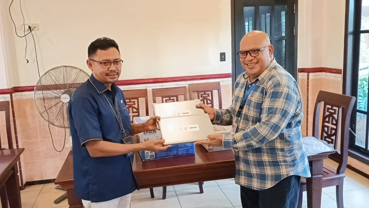 INPEX Masela Ltd. menyerahkan bantuan perlengkapan sekretariat kepada Persatuan Wartawan Indonesia (PWI) Kabupaten Kepulauan Tanimbar dalam acara silaturahmi yang berlangsung di Aula Hotel Galaxy Saumlaki, Kecamatan Tanimbar Selatan, Kabupaten Kepulauan Tanimbar, Maluku, Selasa (19/8/2025).