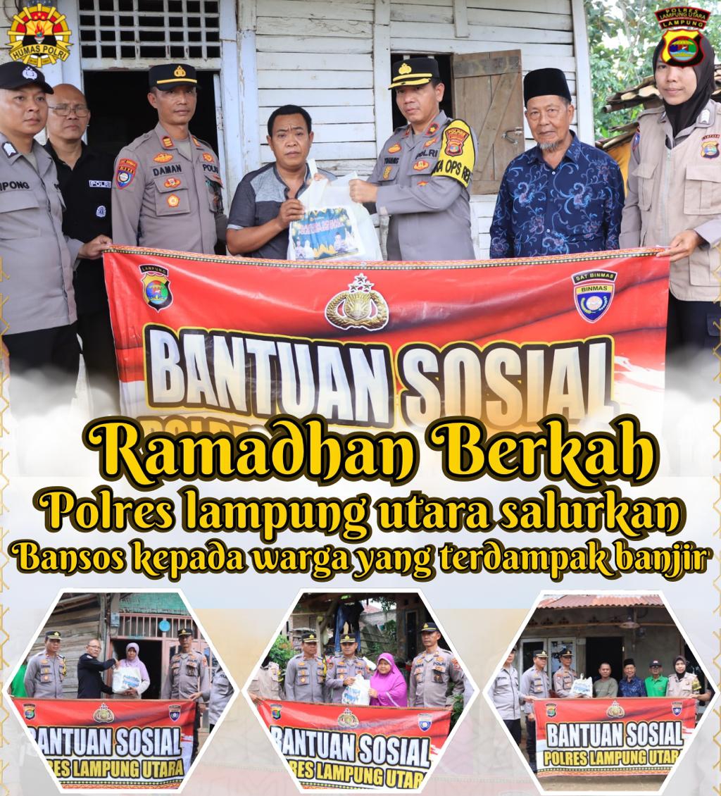 Ramadhan Berkah, Polres Lampung Utara Salurkan Bansos Kepada Warga Yang Terdampak Banjir