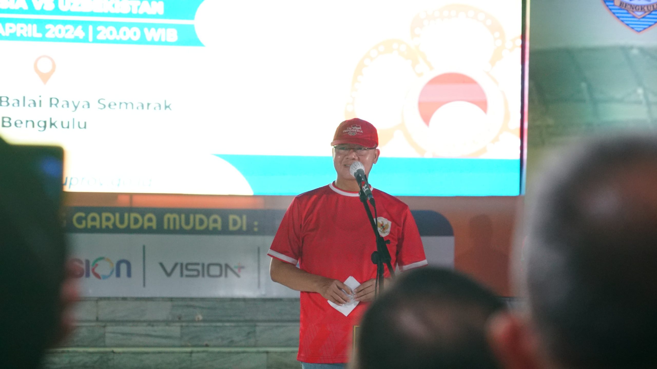 Kompas86.com Bengkulu-Untuk mendukung timnas u-23 pada babak semi final melawan Uzbekistan,gubernur rohidin mersyah menggelar nonton bareng piala Asia u-23 di balai raya semarak (29/04/2024).