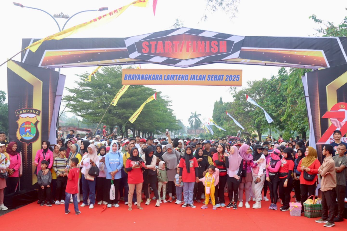 Kegiatan yang meliputi jalan sehat dan senam bersama ini dibuka langsung oleh Kapolres Lampung Tengah, Polda Lampung, AKBP Alsyahendra, S.I.K., M.H., yang hadir bersama unsur Forkopimda, para tokoh masyarakat, serta ribuan peserta dari berbagai kalangan, mulai dari pelajar, ASN, hingga komunitas lokal.