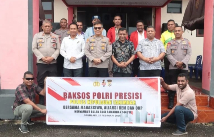 Demi menyambut Bulan Suci Ramadhan 1446 Hijriah, Polres Kepulauan Tanimbar menggelar pembagian bantuan sosial (bansos) Polri presisi bersama Mahasiswa, Aliansi BEM dan OKP, yang berlangsung di Mapolres Kepulauan Tanimbar jalan Ir. Sukarno Saumlaki.