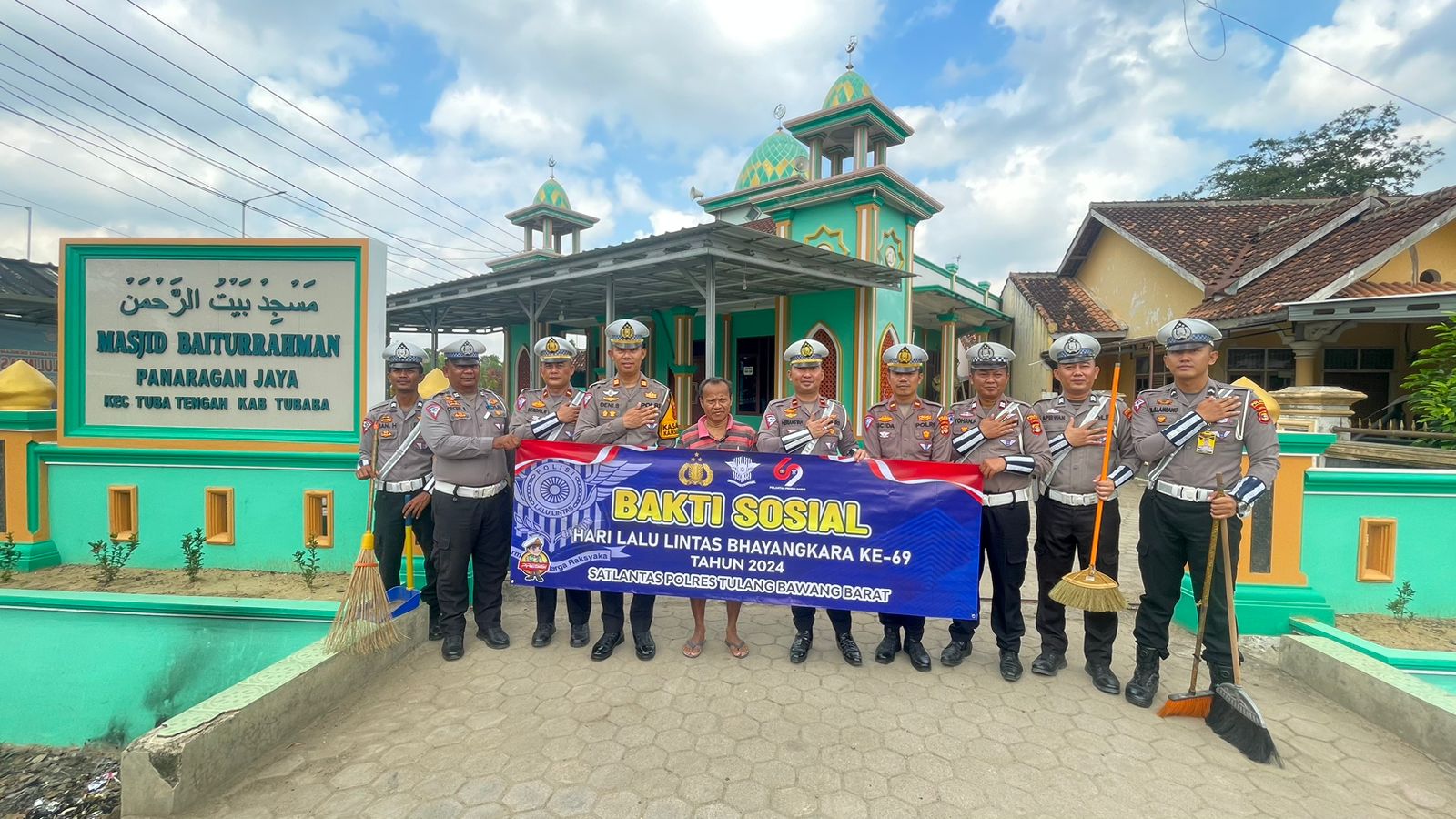 Tulang Bawang Barat,Kompas86.Com Dalam rangka menyambut HUT Lalu lintas Bhayangkara ke 69, Satuan Lalu lintas Polres Tulang Bawang Barat Polda Lampung melaksanakan kegiatan Bakti Religi yang digelar di Masjid Jami Nurul Huda dan Masjid Baiturrahman Kel Panaragan Jaya Kec.Tulang Bawang Tengah Kab.Tulang Bawang Barat, Sabtu (07/09/2024) Pagi