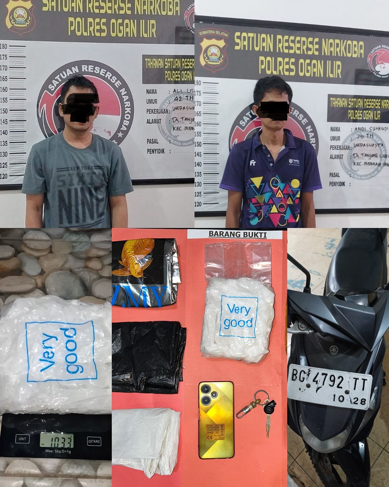 Ogan Ilir (Sumsel,) , kompas86.com – Dua tersangka berinisial AU (42 tahun) dan AS (36 tahun), keduanya warga Desa Tanjung Lubuk, diamankan petugas saat hendak melakukan transaksi sabu di sebuah pondok di wilayah tersebut. Dari hasil penggerebekan, Satres Narkoba menyita barang bukti berupa 1 paket besar sabu seberat bruto 1.033 gram, serta sejumlah barang pendukung lain seperti kantong plastik, lakban, handphone, dan satu unit sepeda motor Yamaha Mio.