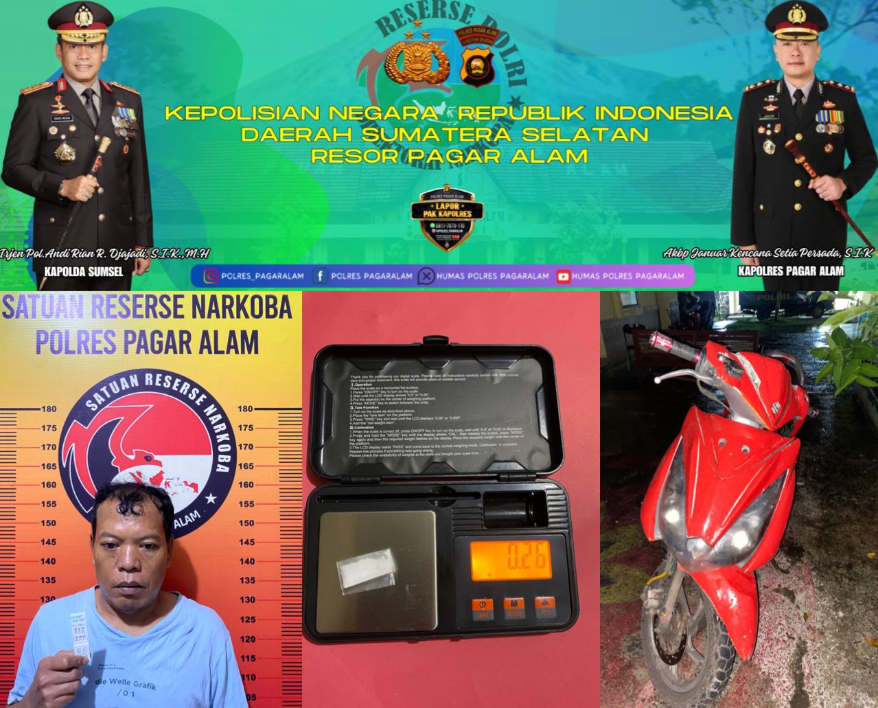 HumasRes Pagar Alam – Satuan Reserse Narkoba Polres Pagar Alam berhasil mengungkap kasus peredaran narkotika jenis shabu di wilayah hukum Polres Pagar Alam. Penangkapan terjadi pada Senin (1/9/2025) sekira pukul 00.10 WIB di Jalan Kurnia Akip, Kelurahan Tumbak Ulas, Kecamatan Pagar Alam Selatan.
