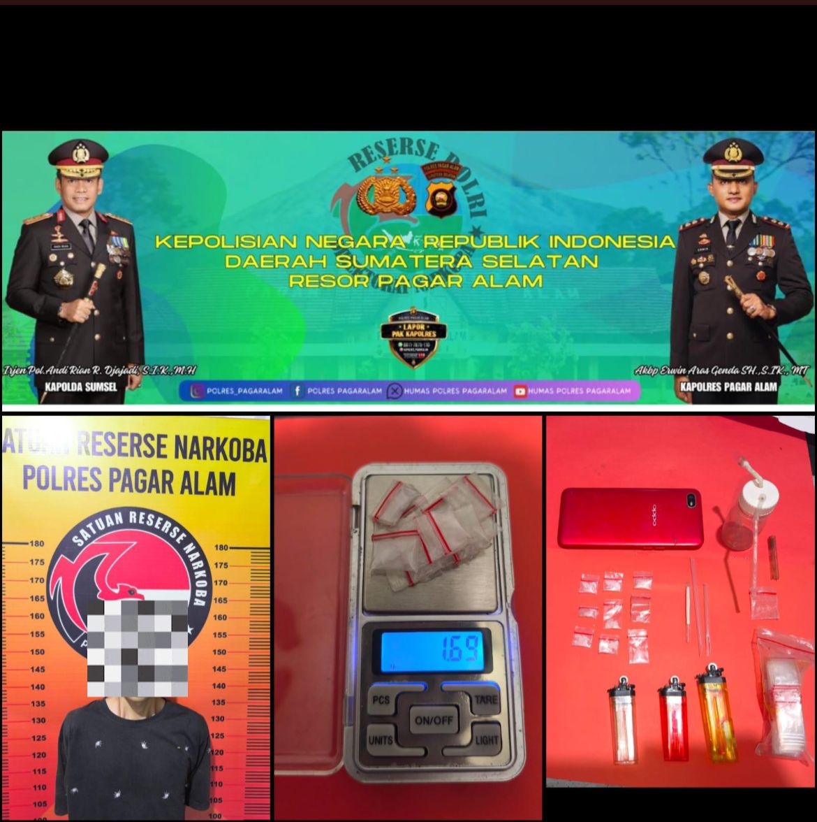 Satresnarkoba Pagaralam Tangkap Pengedar Shabu di Perumnas Guppi
