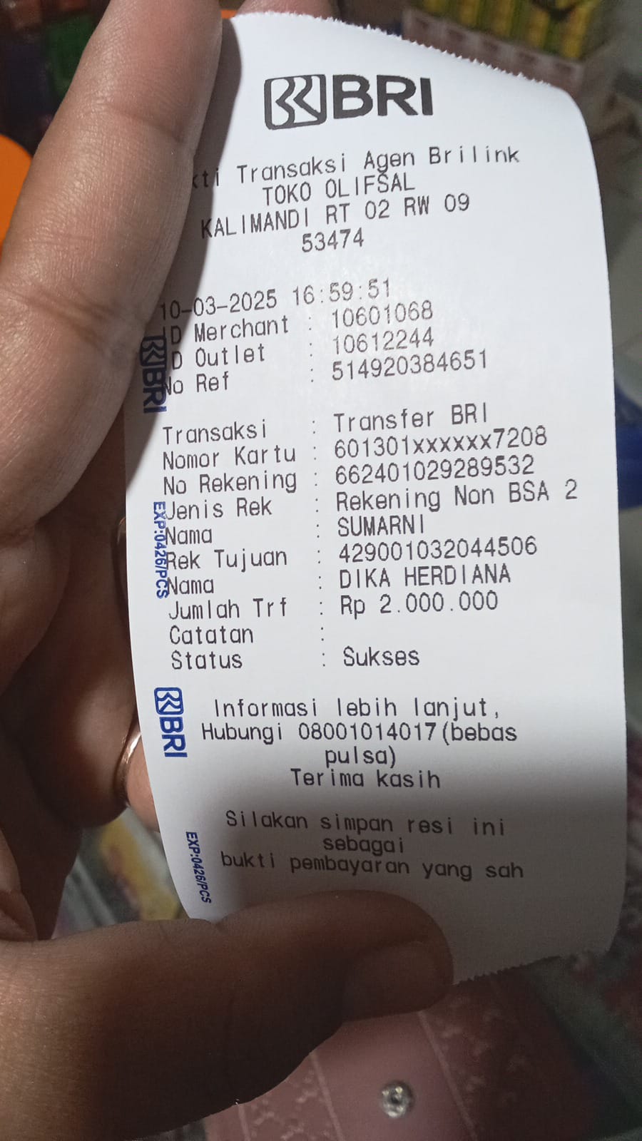 Karena terbuai oleh iming-iming pelaku, korban akhirnya bersedia transfer namun hanya bisa membantu sejumlah 2 juta rupiah saja. Korban telah mentransfer 2 juta rupiah tersebut ke rekening salah satu bank atas nama DIKA HERDIANA (10/03/2025).