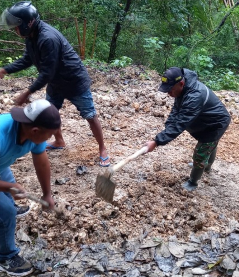 Simak: Ini Cara Serda Agus Takesan dan Kepala Desa Kuatae Ajak Warga Gotong Royong Benahi Jalan Rusak
