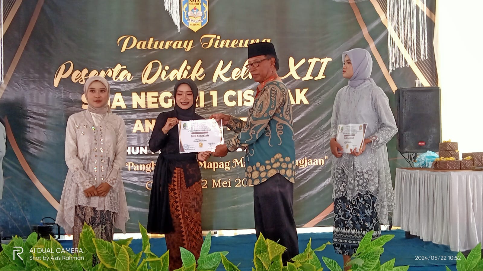 Hadir dalam acara tersebut Kepala Sekolah, Camat Cisalak, Ketua Komite, Kepala Desa Darmaga, Kasi Trantib Cisalak, Para tokoh Pendiri Sekolah, Orang tua murid dan Siswa-siswi Kelas XII