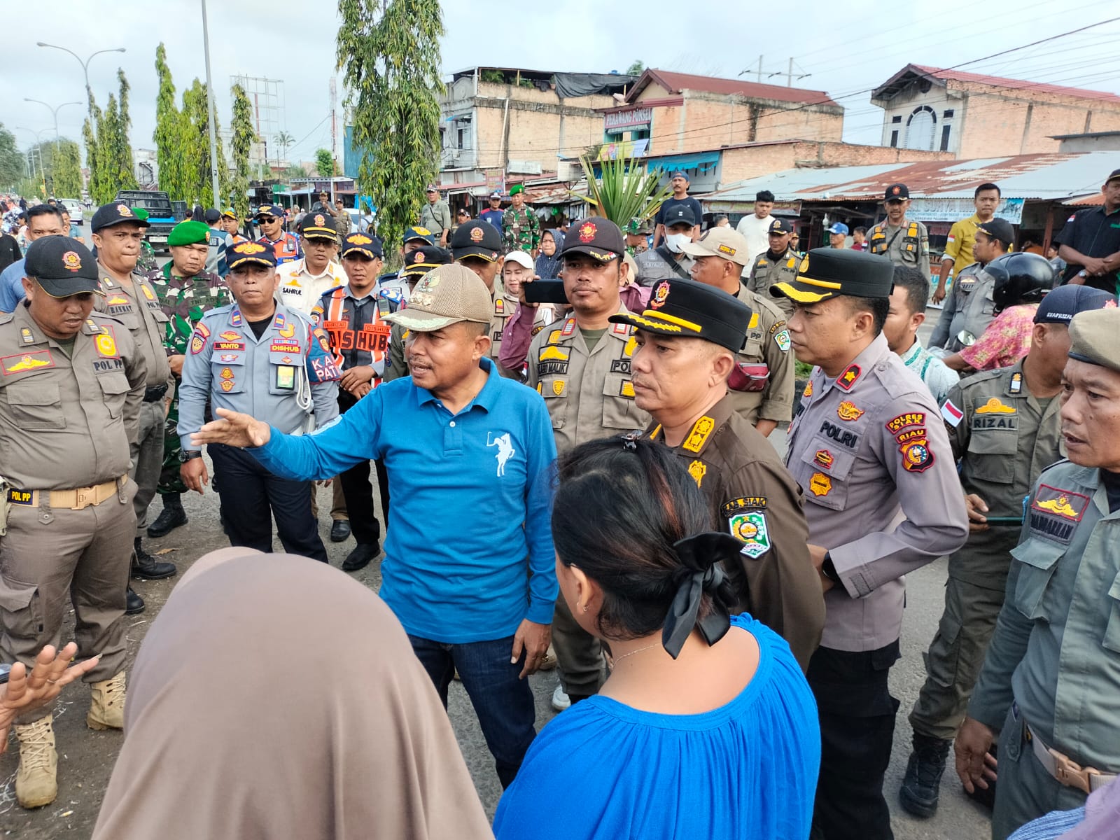 Terjunkan Puluhan Personil, Polsek Tualang Lakukan Pengamanan Penertiban PKL di Pasar Tuah Serumpun dan Pipa Caltec