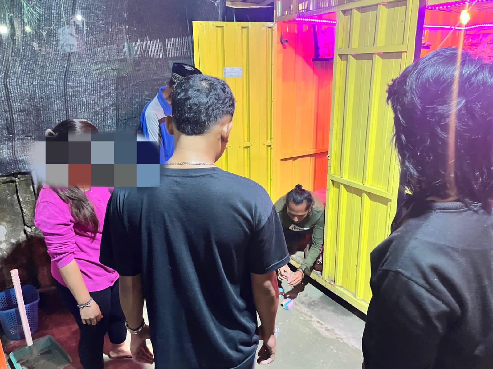 Setelah tak berapa lama tiba di lokasi tersebut, Tim opsnal melihat tiga orang laki-laki dan satu orang perempuan sedang berada di dalam ruko. selanjutnya Tim bergerak cepat untuk melakukan penyergapan dan penangkapan terhadap para pelaku, namun Sebelum dilakukan pengeledahan, tim memanggil warga di sekitarnya untuk menyaksikan proses penggeledahan di dalam ruko tersebut.