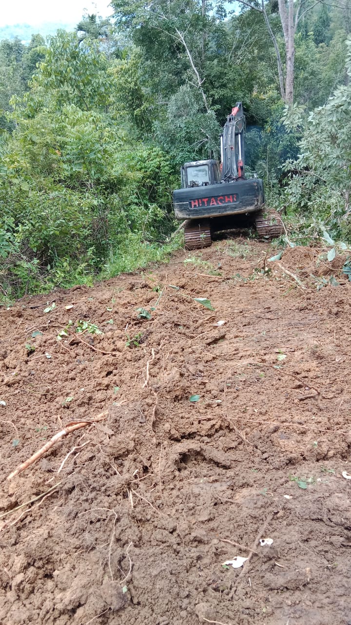 Pembukaan badan jalan ini menggunakan eksavator atau sering kita kenal dengan namanya alat berat.