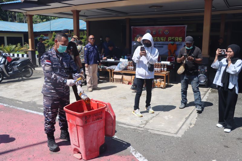 Tidak hanya itu, akan dilaksanakan juga pemusnahan miras ilegal. Kapolres menyampaikan terima kasih kepada Danlanal Nabire LETKOL Laut Pius Herdasa Krisna Murti, ST, MT, CBEI, CACA, CRMP, CHRM, yang telah bersinergi dengan Polres Nabire dalam hal ini Satresnarkoba, dalam mengungkap peredaran miras ilegal. Miras ilegal dan ganja tersebut didapatkan oleh tim patroli Lanal Nabire bekerjasama dengan Polres Nabire.
