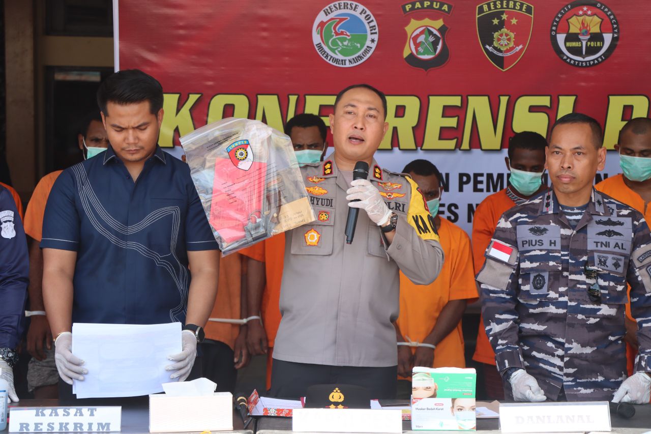 Giat konferensi pers tersebut dipimpin langsung oleh Kapolres Nabire AKBP. Wahyudi Satriyo Bintoro, S.H., S.I.K., M.Si.