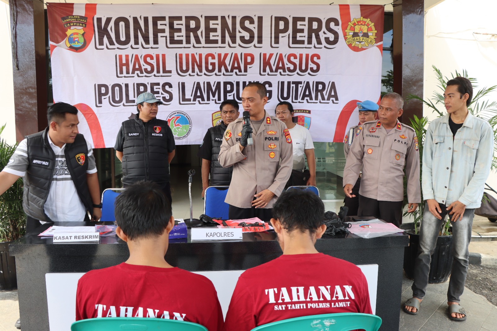 “Pengungkapan ini merupakan jawaban dari keresahan masyarakat terhadap pencurian kendaraan yang terjadi di wilayah hukum Polres Lampung Utara,” ujar Kapolres Lampung Utara AKBP Deddy Kurniawan saat menggelar Konferensi Pers di dampingi Kasat Reskrim AKP Apfryyadi. Senin (30/6/25).