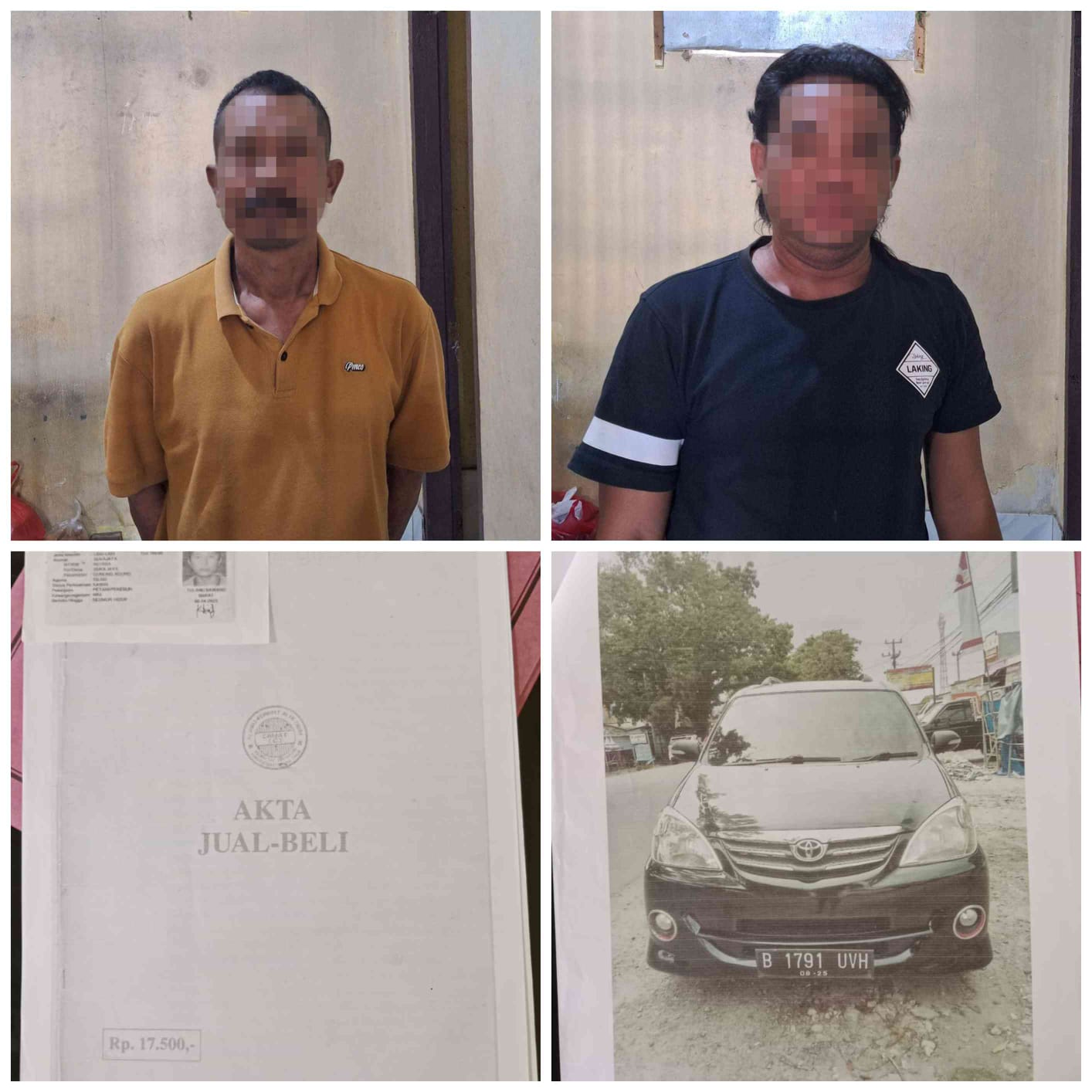 1 ( Satu ) Bukti Kertas Foto kendaraan R4 Mobil Jenis Toyota Avanza Warna Hitam No.pol : B 1791 UVH Noka : MHFM1CA4J8K012715 Nosin, ungkap IPTU Amir.