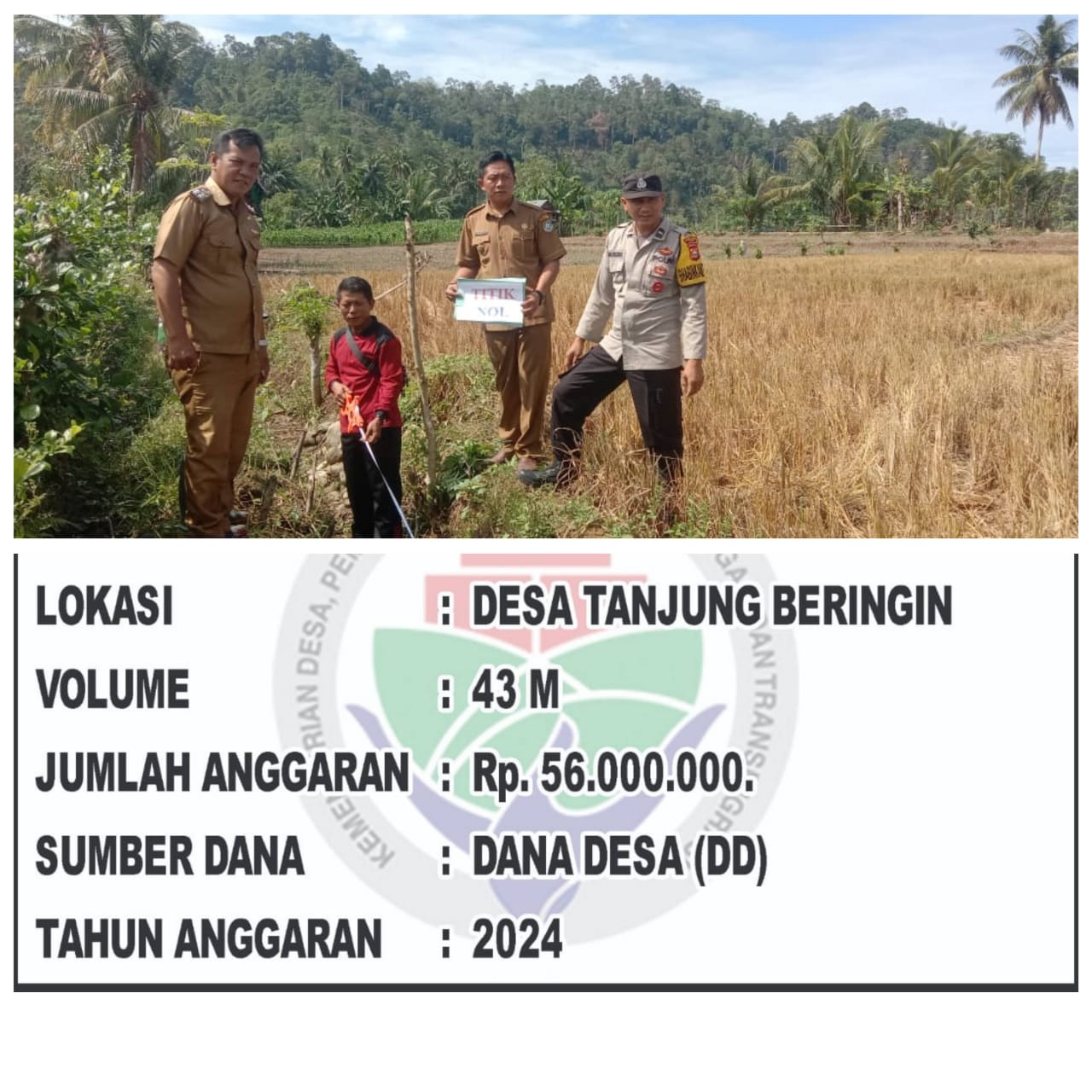 Kepala Desa Tanjung Beringin Evan Jayadi mengatakan, pemerintah Desa Tanjung Beringin membangun saluran irigasi dari anggaran APBN melalui Dana Desa (DD) tahun anggaran 2024.