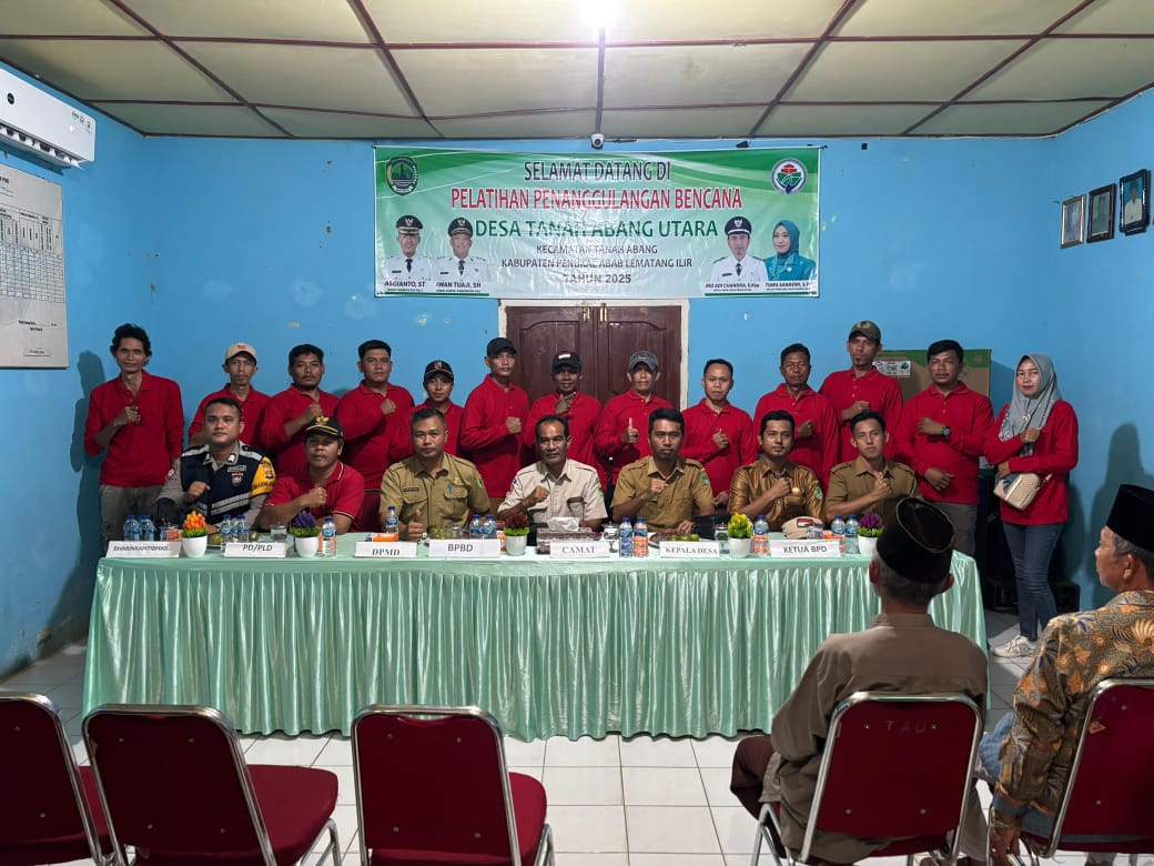 PALI — Dalam upaya memperkuat kesiapsiagaan masyarakat terhadap potensi bencana alam, Polsek Tanah Abang melalui Bhabinkamtibmas Desa Tanah Abang Utara, Brigadir M. Jaim Dani, S.H menghadiri dan melakukan monitoring kegiatan Pelatihan Penanggulangan Bencana yang berlangsung di Kantor Desa Tanah Abang Utara, Kecamatan Tanah Abang, Kabupaten Penukal Abab Lematang Ilir (PALI), pada Selasa (3/6/2025) sekitar pukul 14.00 WIB.