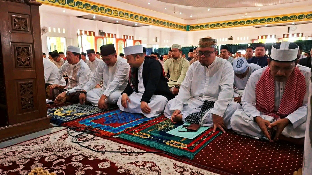 Dalam sholat tersebut terlihat hadir Helmi Hasan,sekretaris daerah,asisten,pejabat eselon 2,eselon 3 serta masyarakat sekitar.